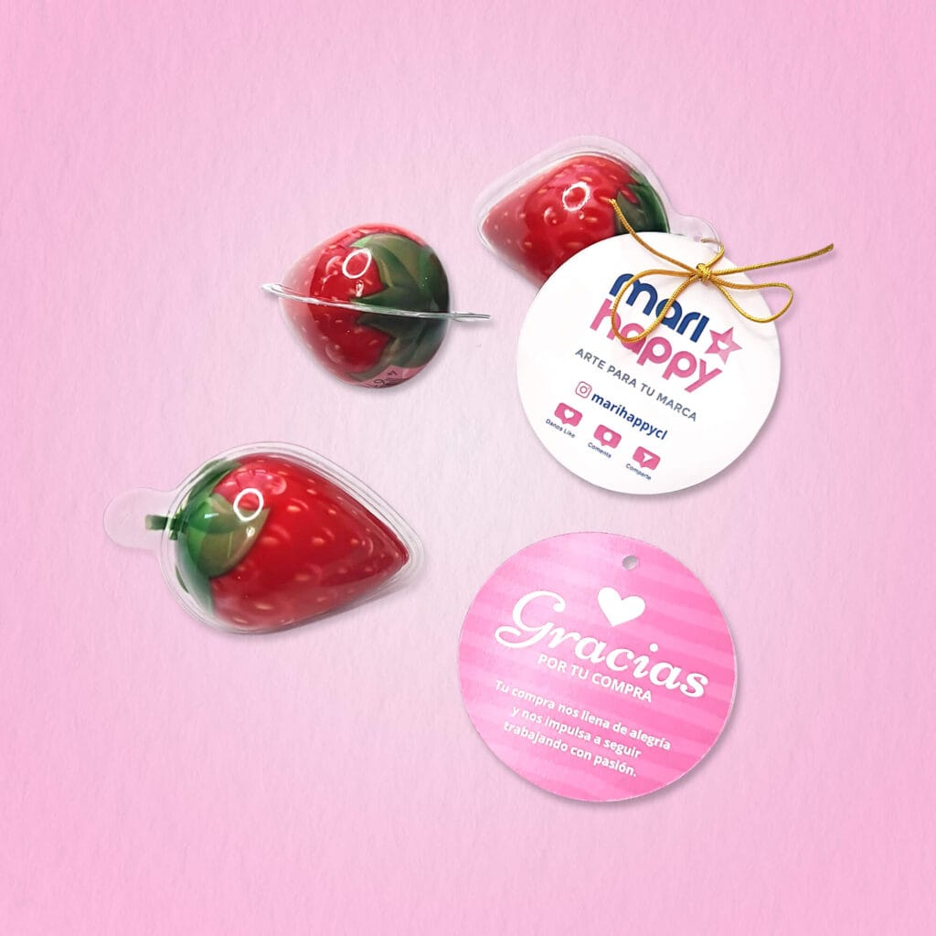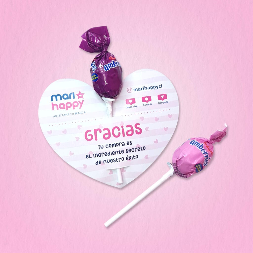 Tarjeta 5x5cm, ambas caras + Gomita de frutilla