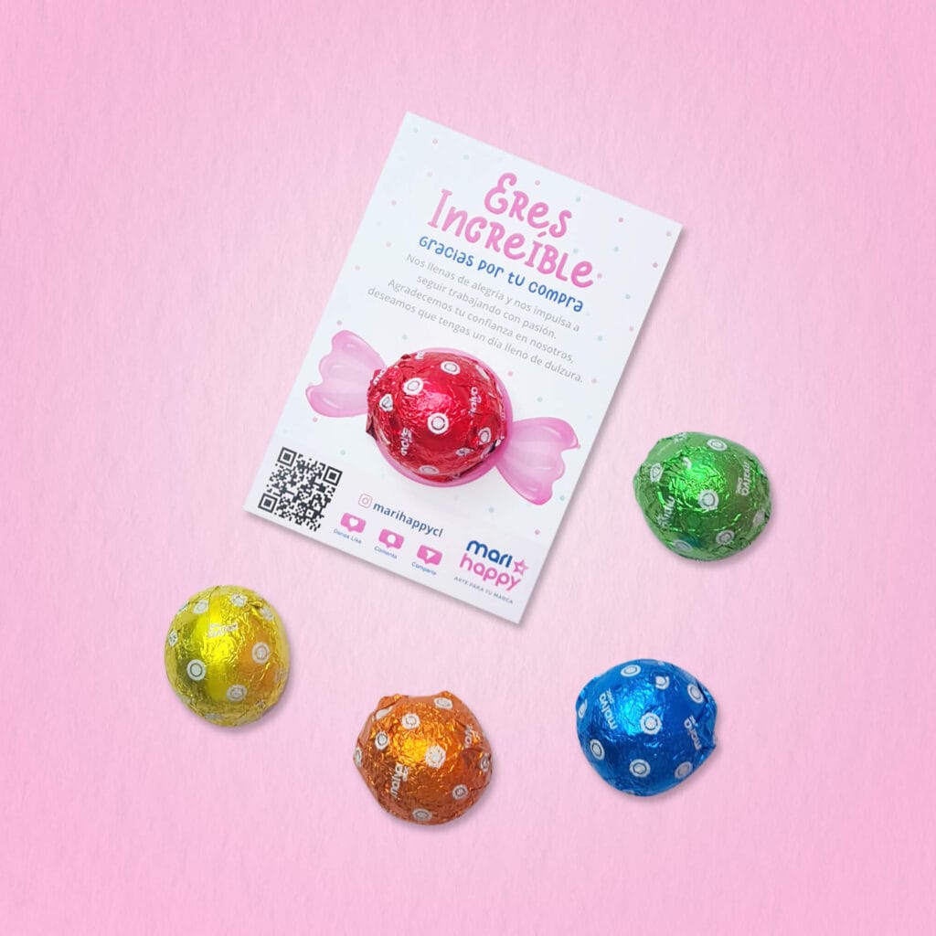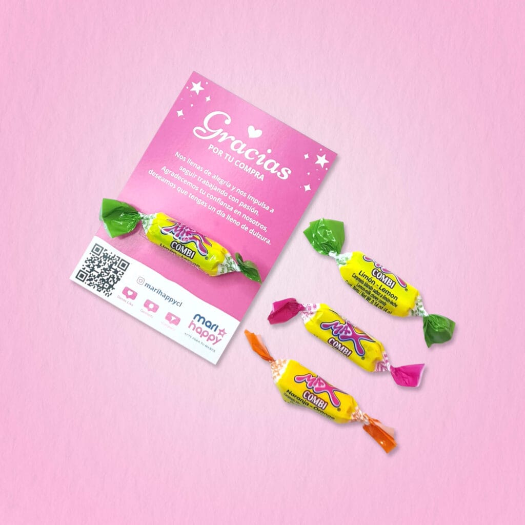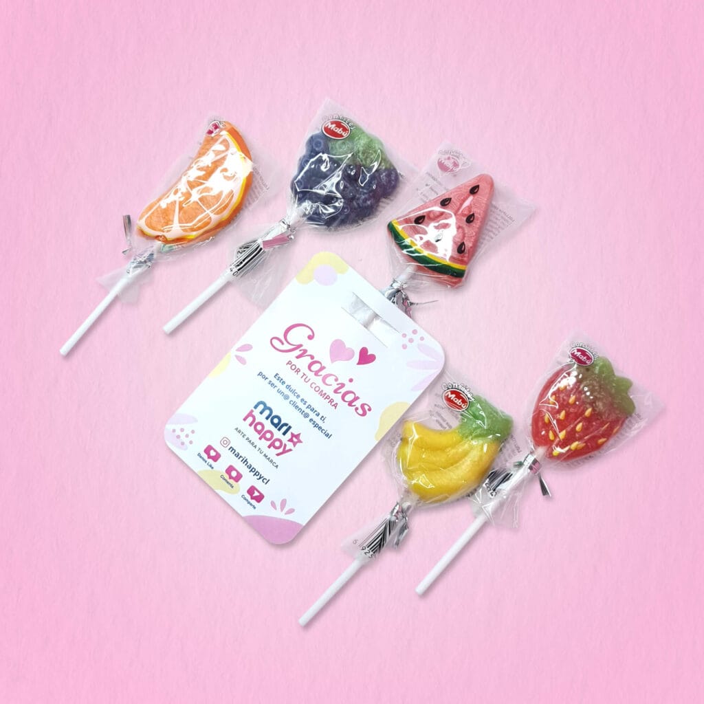 Tarjeta 7x10cm, una cara + Coyac/Chupetin de frutas