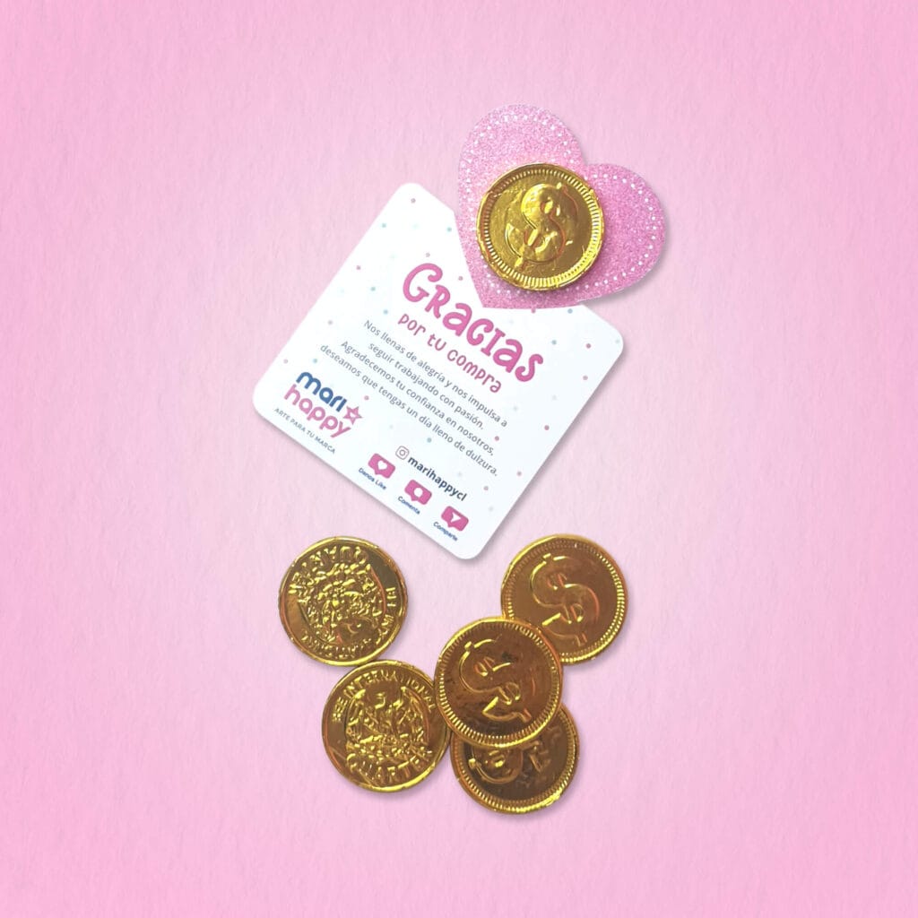 Tarjeta 6x9cm, una cara + Moneda de Chocolate 2,5cm